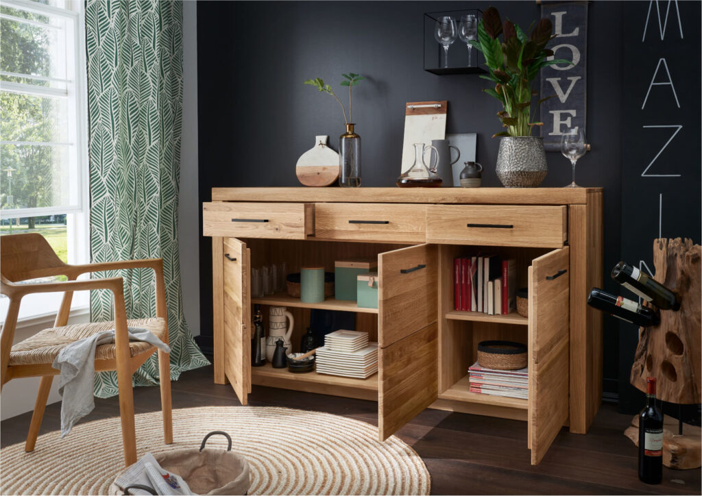 Komoda w salonie pełni wiele ról – może służyć do przechowywania obrusów, tekstyliów, dokumentów, a także do eksponowania dekoracji. Witryna z kolei świetnie nadaje się do prezentowania ozdobnych przedmiotów, ale także do przechowywania rzeczy, które chcemy mieć pod ręką, ale jednocześnie chcemy je chronić.